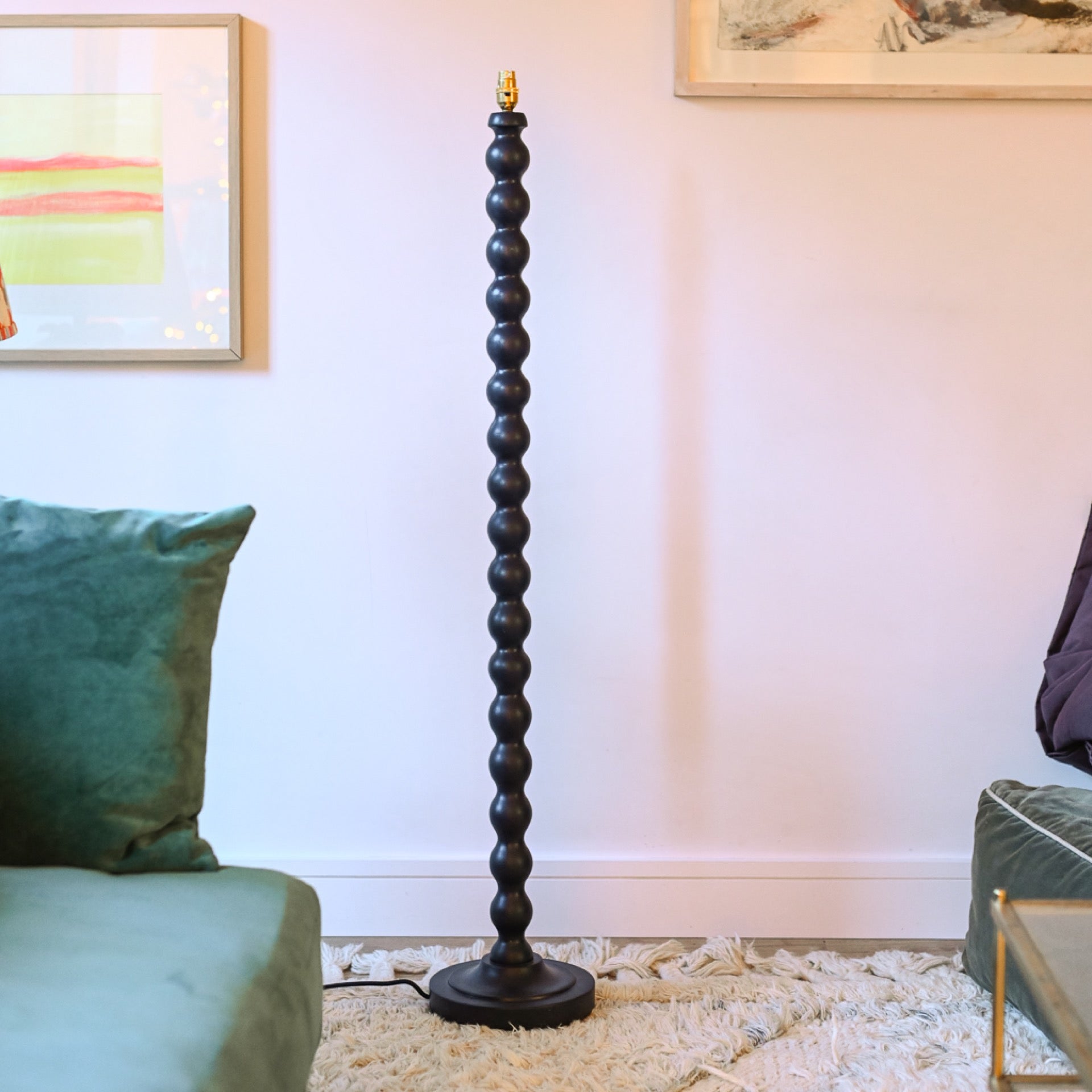 And this colour goes with just about any lampshade colour. 130cm in height with a brass bayonet bulb top fitting and a black rope cord cable.