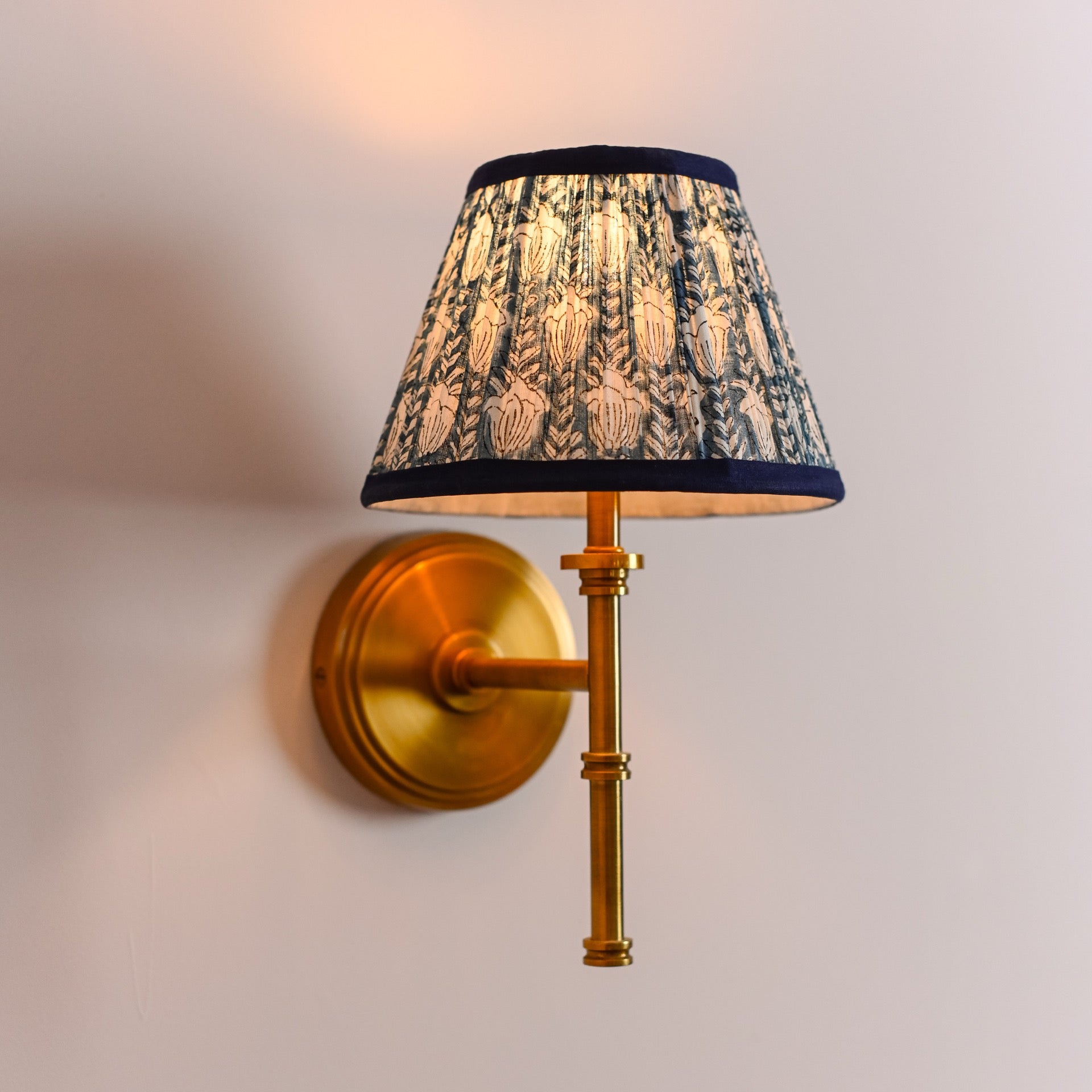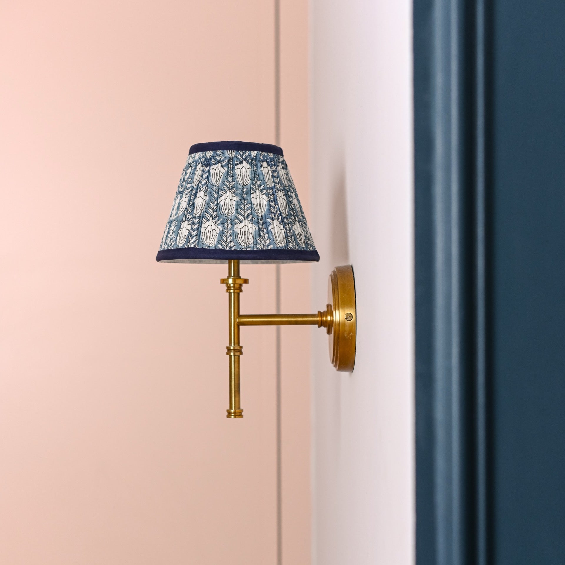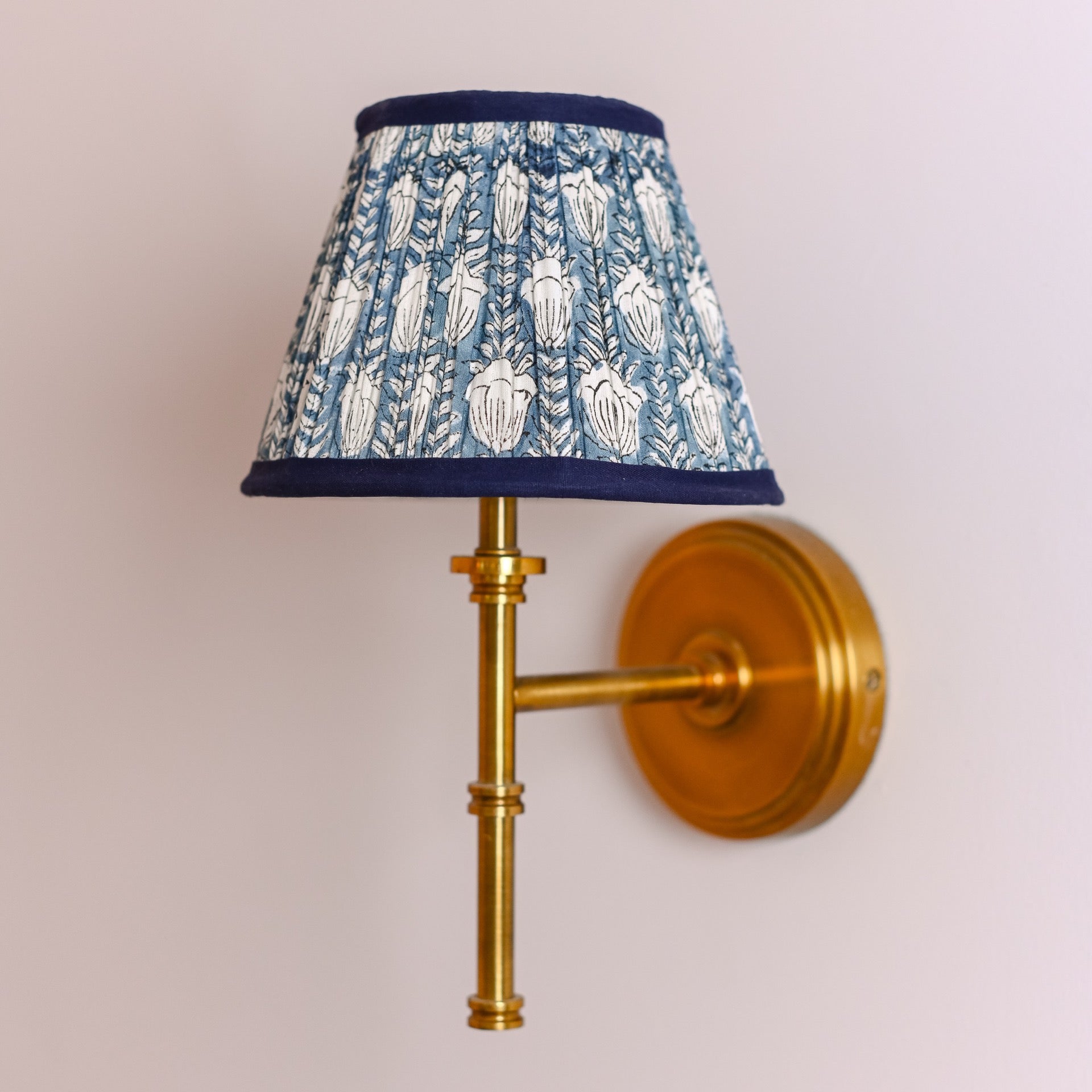 For the blue hued scheme, we’ve created this rich navy, blue and white flower pattern which has been block printed in India by hand on a rich cotton. Bedrooms, sitting rooms, nooks or reading corners, this lampshade will add a touch of tranquillity to your space.